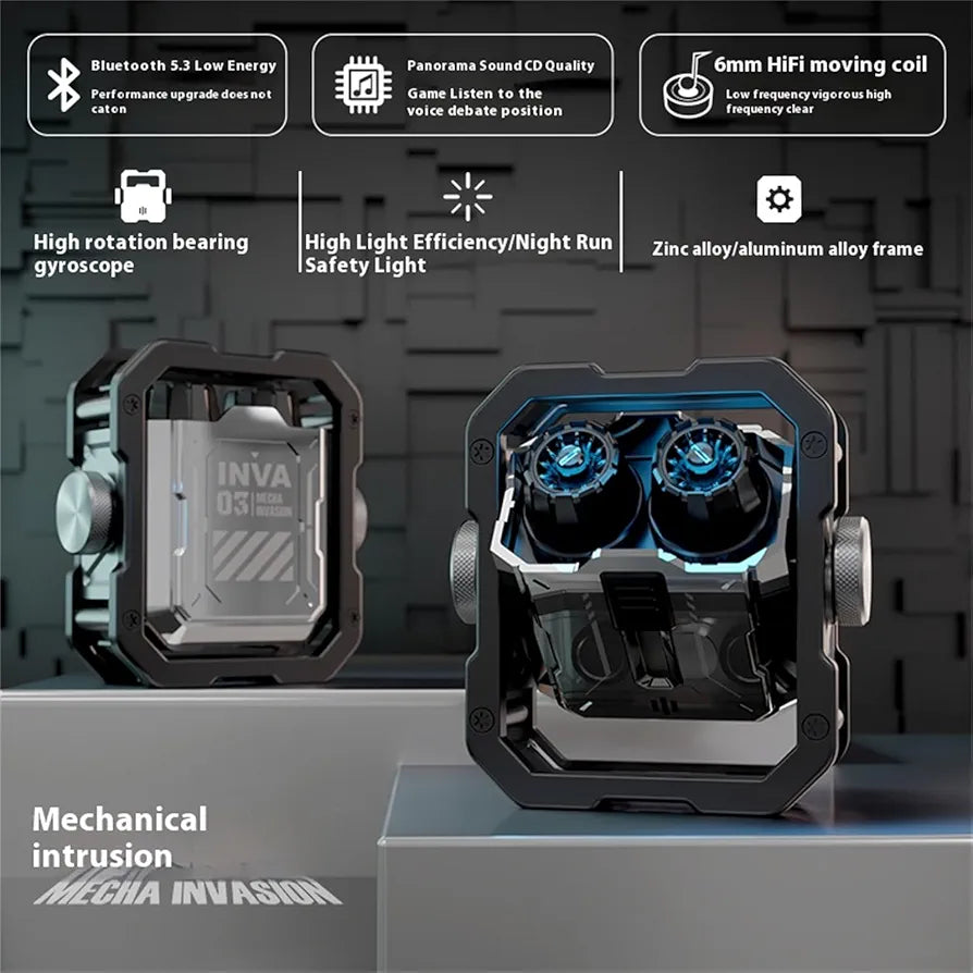 Mechanical Invasion INVA-S Mecha Wireless Bluetooth Headset, Jetpack Trendy Dazzle, Bluetooth 5.3, RGB Light Effect, in-Ear, for iOS or Android, for Running Sports,Silver. ⭐⭐⭐⭐⭐ (4.9/5)